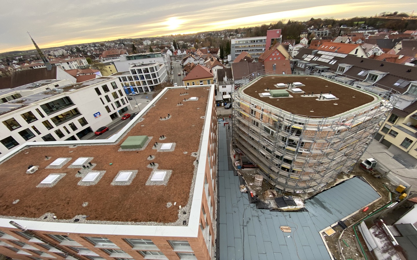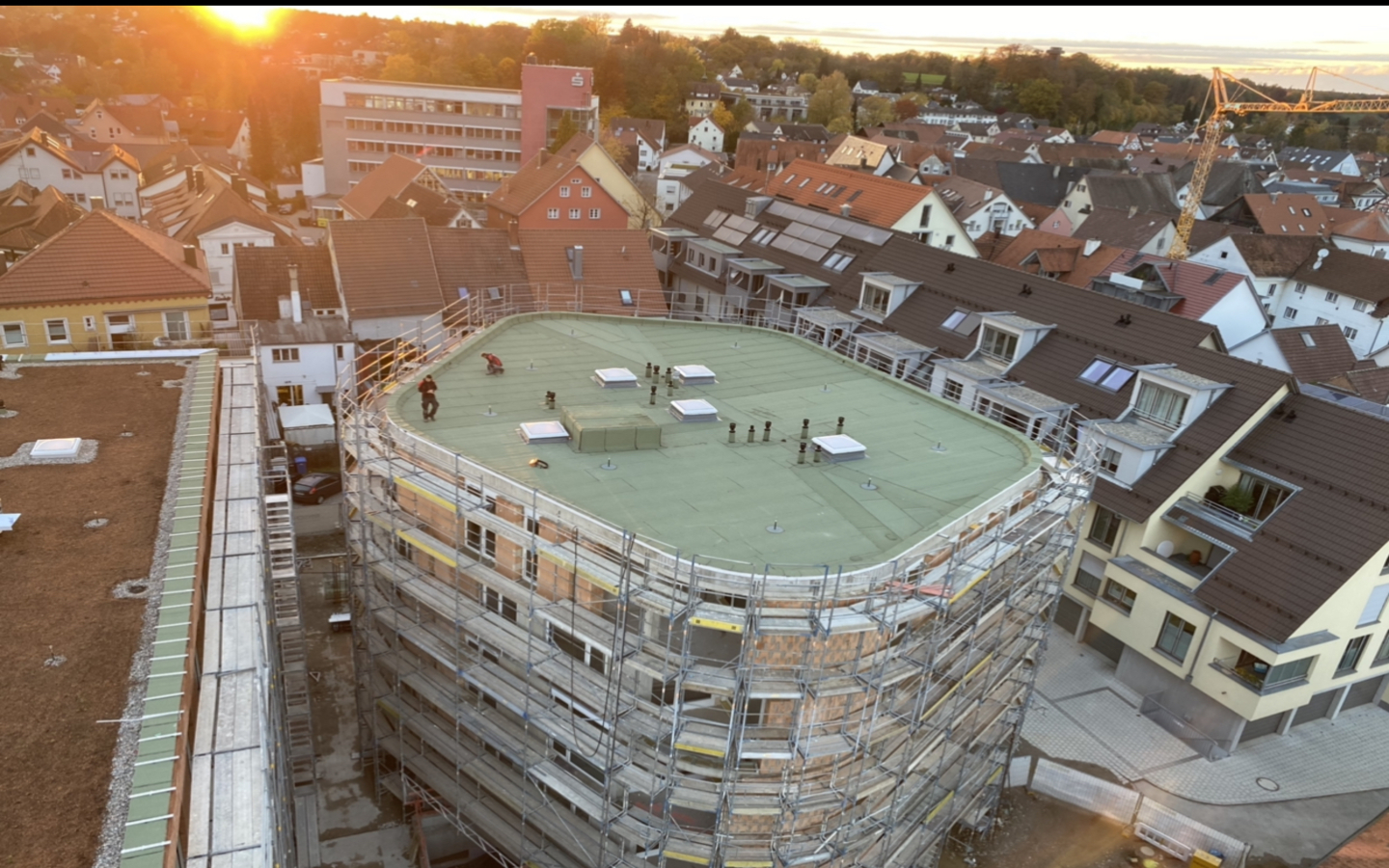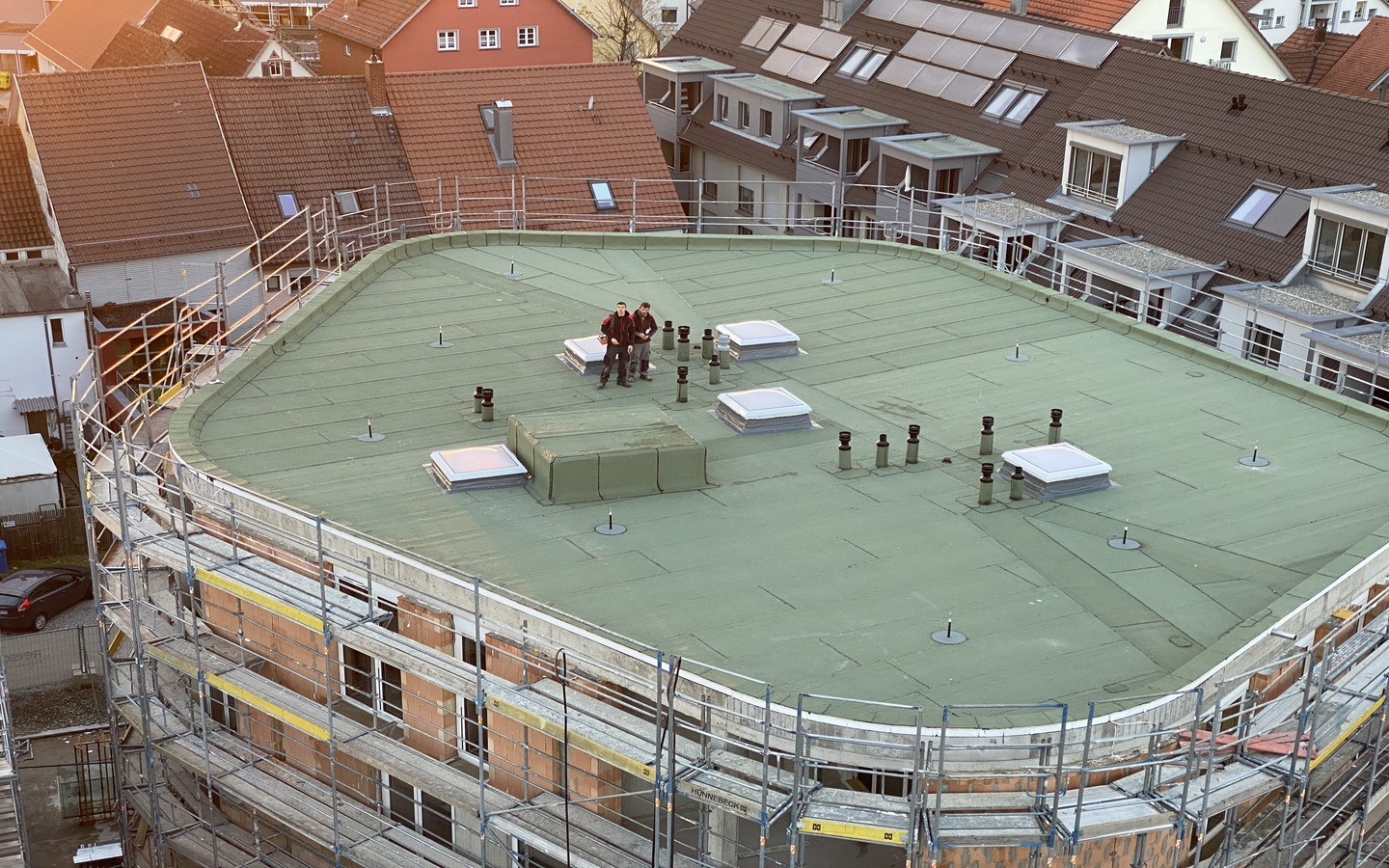 Das Gebäude „An der alten Mälzerei“ soll mehr sein als nur ein neues Bauwerk in der Innenstadt von Bad Saulgau. Von der Firma Reisch aus Bad Saulgau entwickelt und gebaut, schließt es eine Lücke zwischen historischem Stadtkern und Neuer Mitte und ist mit seinen Wohn- und Geschäftsflächen ein städtebauliches Beispiel für die Innenstadt der Zukunft. Bei diesem Objekt haben wir die Abdichtungsarbeiten am Dach, an den Attiken, Balkonen und Loggien erfolgreich abgeschlossen.